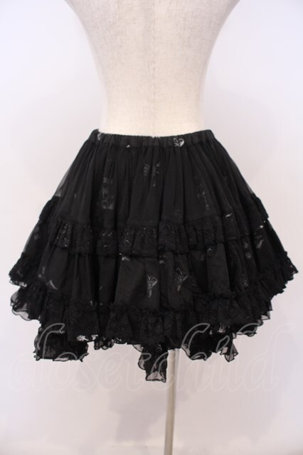 FRILL / プリントチュールボリュームスカート ブラック O-26-01-28-046-HN-SK-IG-OS