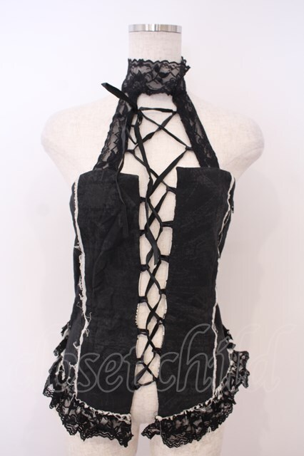 h.naoto Blood / ガーゼフリルホルタービスチェ ブラック×ホワイト O-26-01-28-045-HN-TO-IG-OS