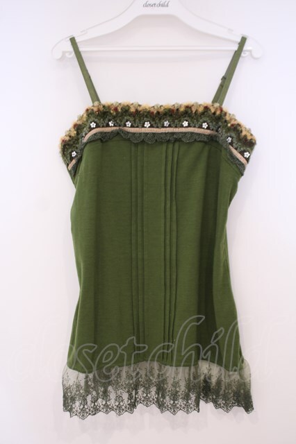 axes femme / ラメニットラインキャミソール M グリーン O-26-01-29-060-AX-TO-OW-OS