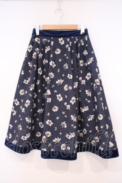 axes femme / 花柄コーデュロイ調スカート M ネイビー O-26-01-29-025-AX-SK-OW-OS