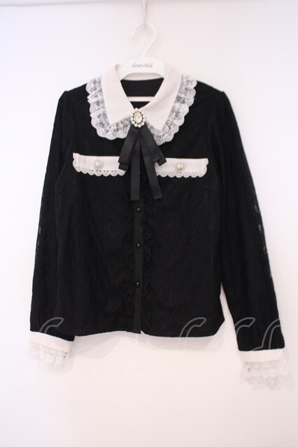 DearMyLove / ビジューブローチレースブラウス M クロ O-26-01-29-014-EL-BL-OW-OS [2100080000072955-O-26-01-29-014-EL-BL-OW-OS]