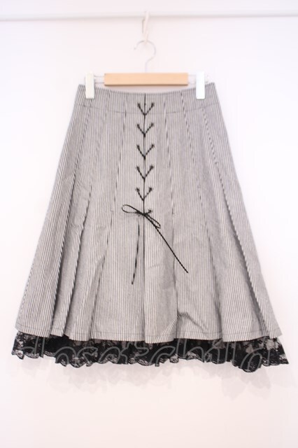 MIHO MATSUDA / フロントレースアップスカート M ブラック×ホワイト O-26-01-29-035-GO-SK-OW-OS