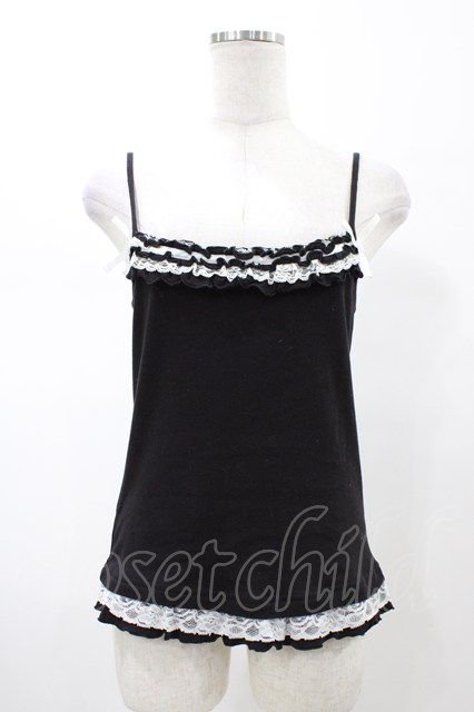 Deorart / フリルキャミソール ブラック×ホワイト H-26-02-02-1057-PU-TO-KB-ZH