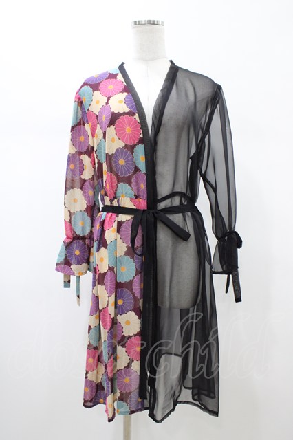 Despair / ギャザー袖和柄シースルー羽織 レトロ菊紫×ブラック H-26-02-02-1060-GO-TO-KB-ZH [2100030000085049-H-26-02-02-1060-GO-TO-KB-ZH]