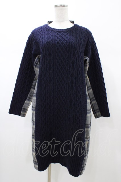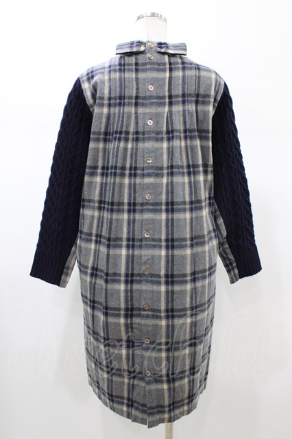 Jane Marple Dans Le Salon / アランニットとシャギーチェックのドレス M グレー×ネイビー H-26-02-02-1047-JM-OP-AK-ZH [2100030000085273-H-26-02-02-1047-JM-OP-AK-ZH]