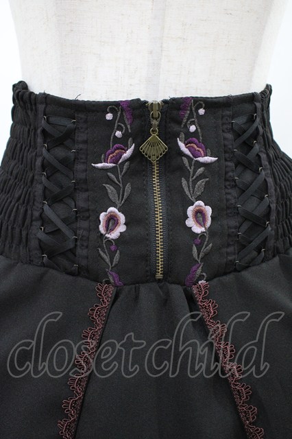 Ozz oneste / タッセルチャーム付刺繍スカート 黒 H-26-02-02-1026-OO-SK-KB-ZH