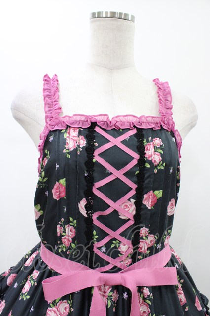 Emily Temple cute / フリルROSEキャミソールドレス M ブラック H-26-02-02-1034-ET-OP-KB-ZH