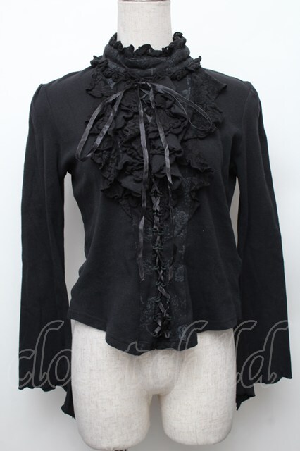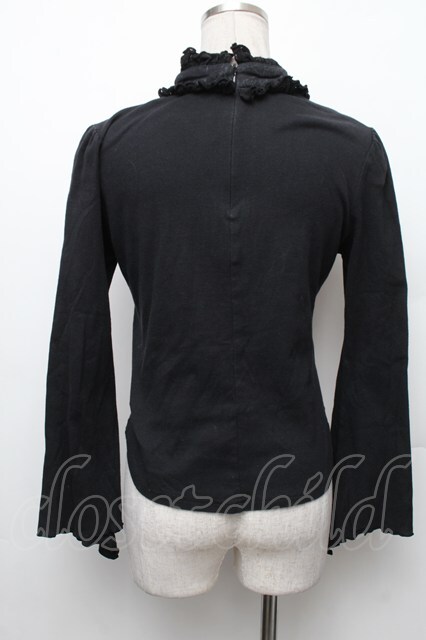 h.naoto Blood / プリント入編み上げフリルカットソー 黒 S-26-01-28-013-HN-TO-SZ-ZS