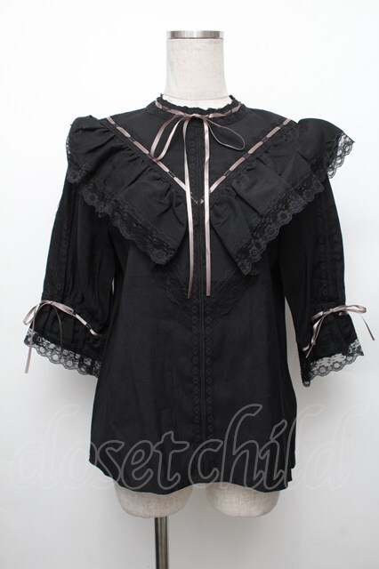 axes femme NOSTALGIE / 配色リボンはしごレースブラウス M 黒 S-26-01-28-015-AX-BL-TE-ZS
