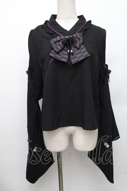 Amavel / お月見うさぎの和風ブラウス 黒 S-26-01-28-017-CA-BL-HR-ZS [2100020000036795-S-26-01-28-017-CA-BL-HR-ZS]