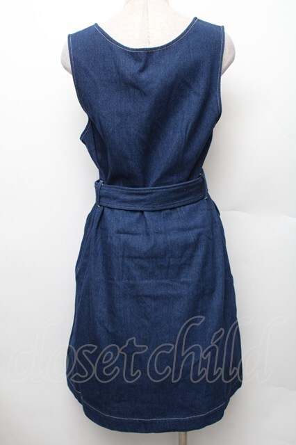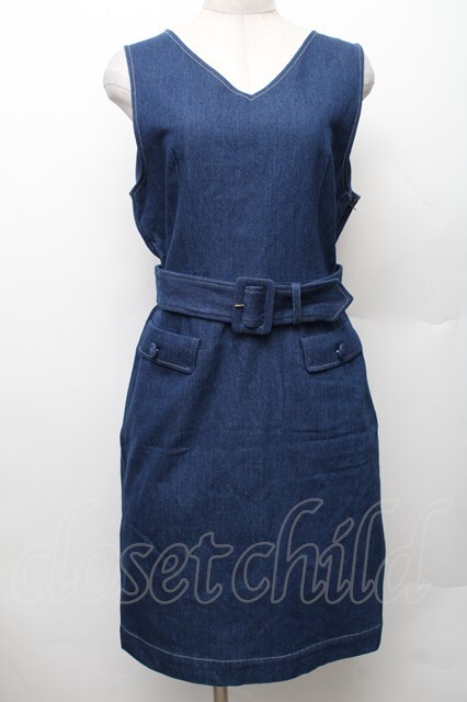 F i.n.t / 太ベルトVネックデニムジャンパースカート F ブルー S-26-01-28-029-CA-OP-TE-ZS