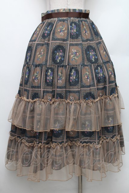 axes femme / フルーツアート柄スカート M 茶 S-26-01-28-049-AX-SK-TE-ZS