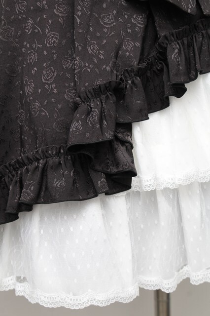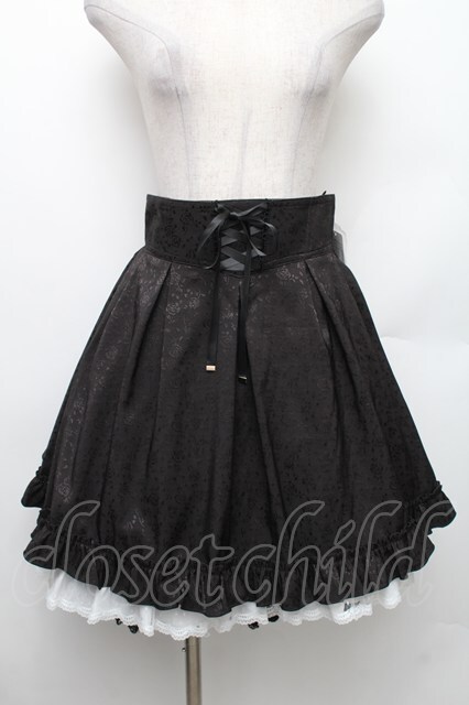 Secret Honey / 薔薇ジャガードリボンスカート 黒x白 S-26-01-28-054-CA-SK-HR-ZS
