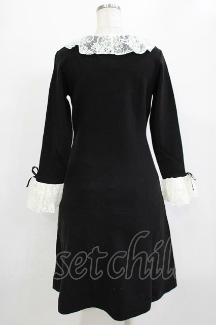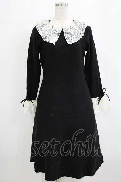 an another angelus / フレアーレース衿ニットワンピース Free BLACK H-26-02-03-023-CA-OP-NS-ZH