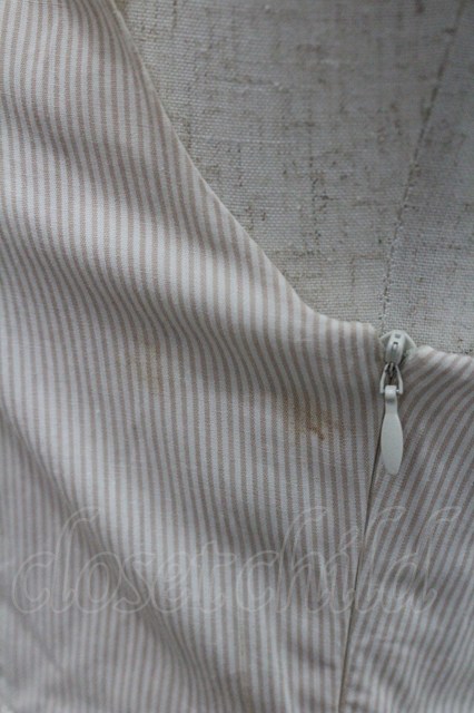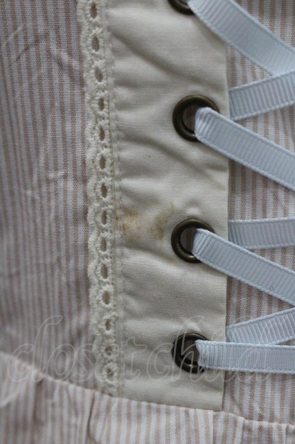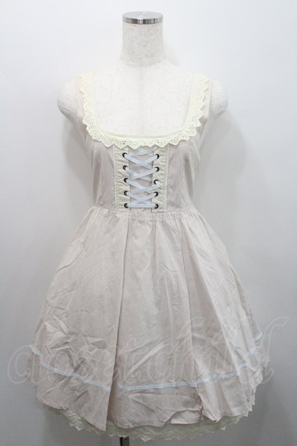 Blue rouge / 胸元編み上げストライプジャンパースカート ベージュ I-26-01-29-034-CA-OP-TE-ZI