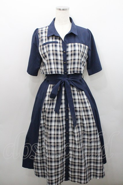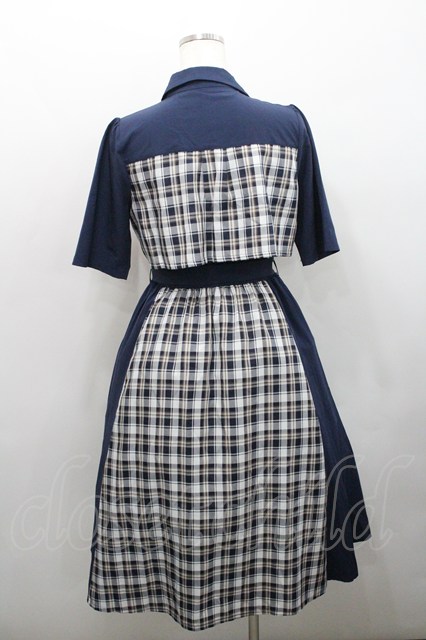 axes femme / ブロッキングフリル袖ワンピース ネイビーX白 I-26-01-29-046-AX-OP-SA-ZI [2100060000049298-I-26-01-29-046-AX-OP-SA-ZI]