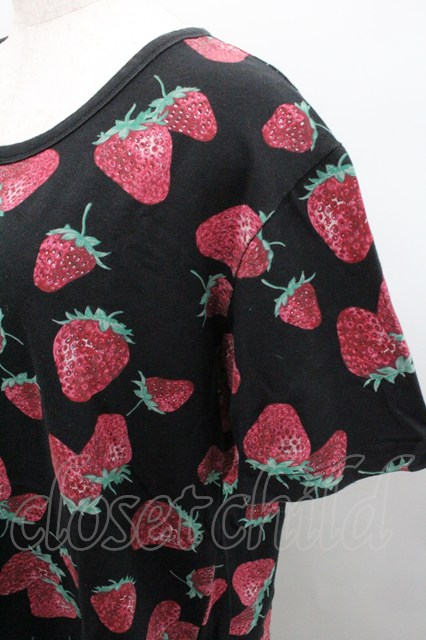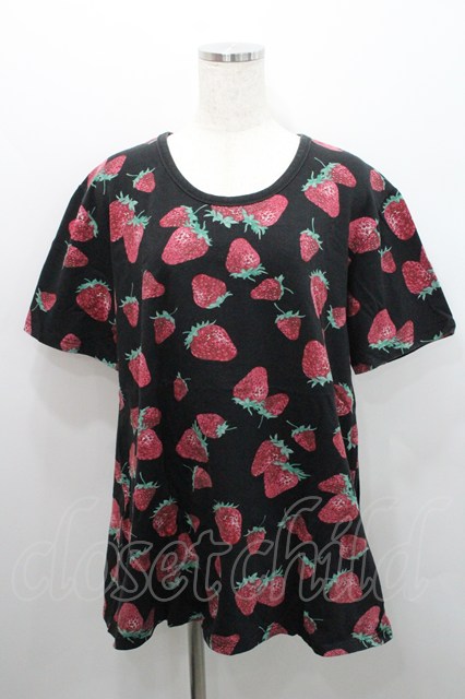 yaponskii / 苺総柄Tシャツ 黒 I-26-01-29-012-PU-TS-TE-ZI [2100060000049882-I-26-01-29-012-PU-TS-TE-ZI]
