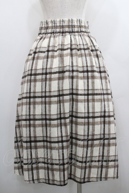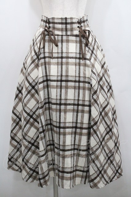 axes femme / レースアップ起毛チェックスカート アイボリーXブラウン I-26-01-29-096-AX-SK-SA-ZI
