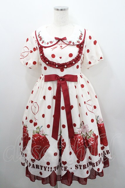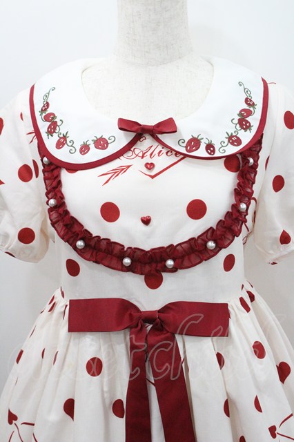 To Alice / Strawberry Partyワンピース S アイボリーX赤 I-26-01-29-054-LO-OP-SA-ZI