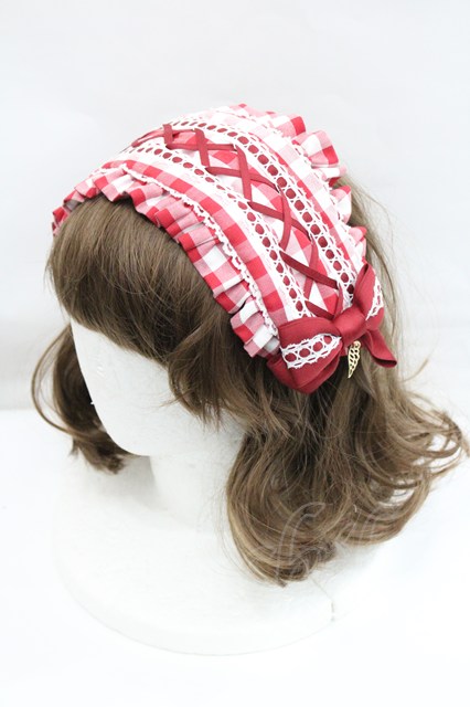 metamorphose / ヘッドドレス風カチューシャ(ギンガム) 赤×白 I-26-01-29-103-ME-AC-TE-ZI