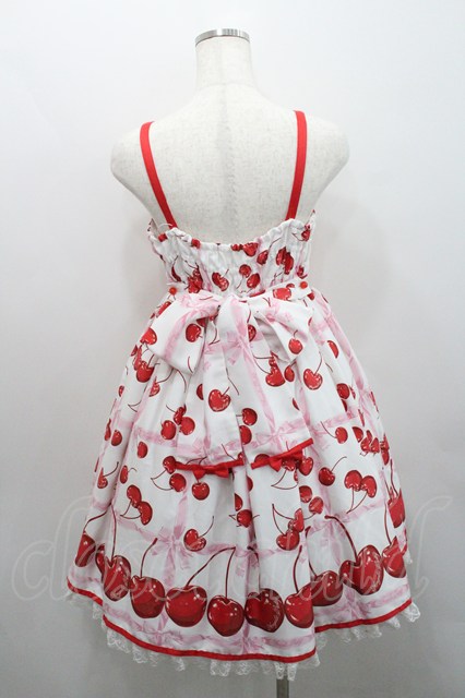 Angelic Pretty / Charming Cherryジャンパースカート 白Xピンク I-26-01-29-027-AP-OP-SA-ZI