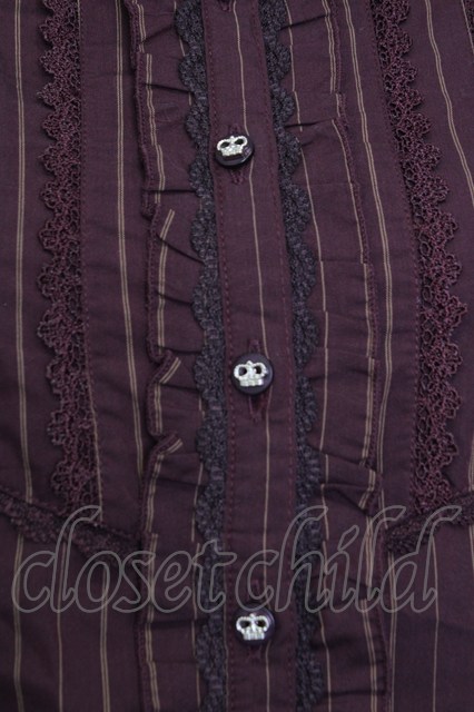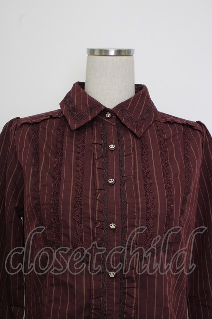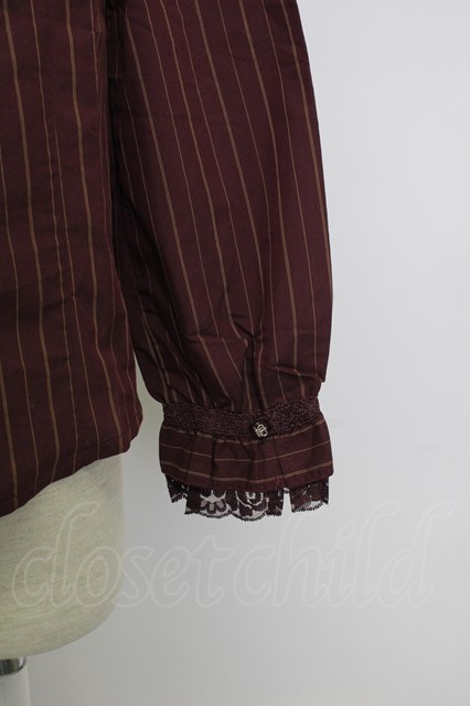 axes femme / 王冠ボタンストライプフリルブラウス ボルドー T-26-02-02-004-AX-BL-SA-ZT [2100060000040551-T-26-02-02-004-AX-BL-SA-ZT]