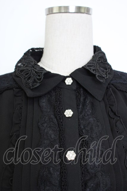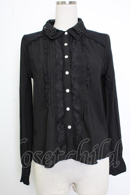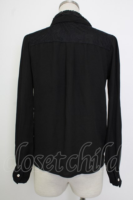 axes femme / レース襟シフォンブラウス 黒 T-26-02-02-005-AX-BL-SA-ZT