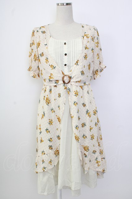 axes femme / ドットx花柄ワンピース M キナリ T-26-02-02-008-AX-OP-SA-ZT