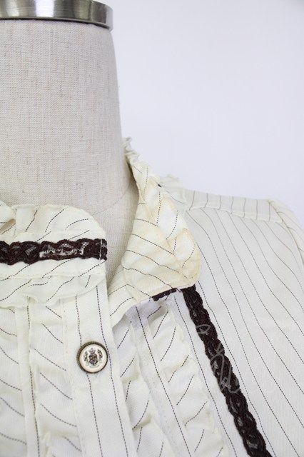 | 襟ぐり、袖先内側黄ばみ汚れ、表面黄ばみ/ウエストリボンセット/ボタン穴汚れ 定価¥6,490-/ IM361X04 リサイクル品の為、記載の無い若干のシミ・汚れ等がある場合がございます。あらかじめご了承の上ご注文ください。詳細はこちら | ||||||||||||||||||
