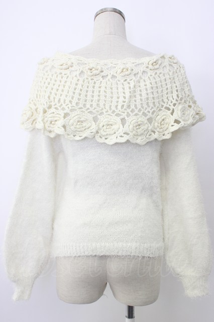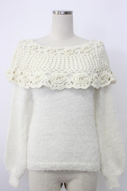 axes femme POETIQUE / 鈎針編み襟デザインニットプルオーバー M シロ T-26-02-03-004-AX-TO-SA-ZT
