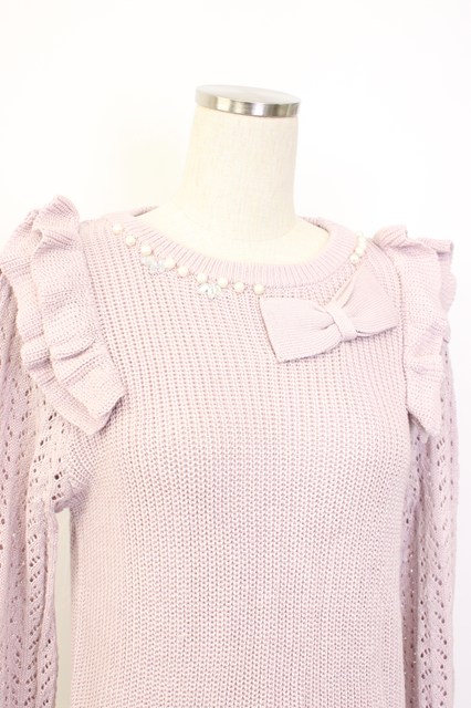 axes femme POETIQUE / ビジュー肩フリルニットプルオーバー M アワピンク T-26-02-03-010-AX-TO-SA-ZT