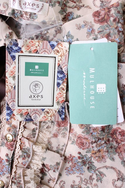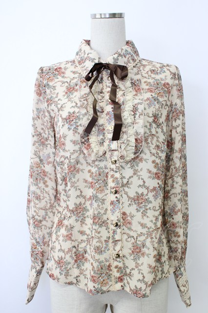 axes femme / 花Xオーナメント柄ブラウス M ベージュ T-26-02-03-016-AX-BL-SA-ZT [2100060000042342-T-26-02-03-016-AX-BL-SA-ZT]