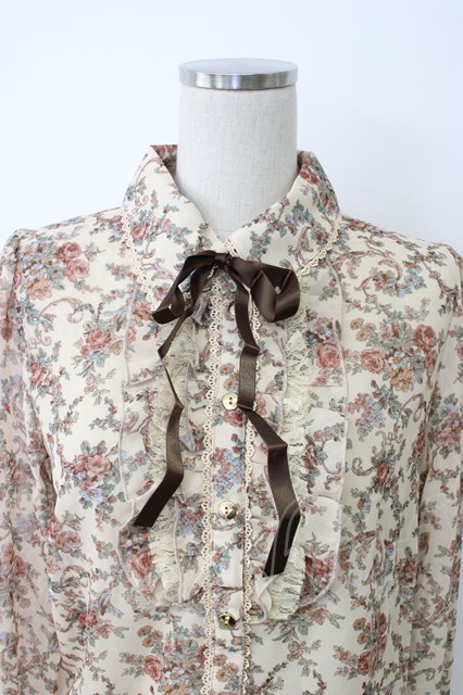 axes femme / 花Xオーナメント柄ブラウス M ベージュ T-26-02-03-016-AX-BL-SA-ZT
