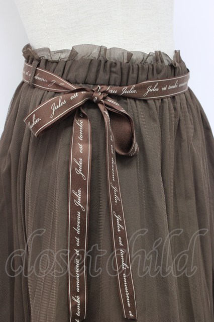 Fi.n.t / ロゴリボン付きプリーツチュールスカート ブラウン T-26-02-03-030-CA-SK-SA-ZT