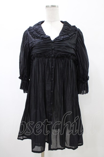 Jane Marple Dans Le Salon / プリーツチュニックブラウス ブラック H-26-02-03-1051-JM-BL-KB-ZH