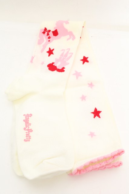 Angelic Pretty / エンジェルポニーオーバーニーソックス シロ×ピンク O-26-01-30-068-AP-ZA-OW-OS [2100080000073282-O-26-01-30-068-AP-ZA-OW-OS]