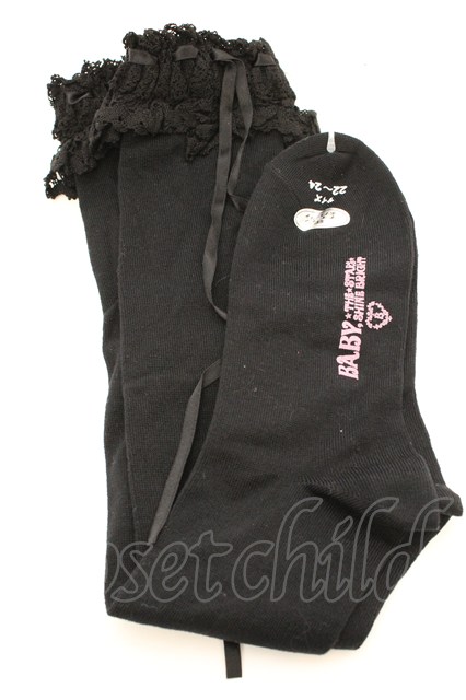 BABY,THE STARS SHINE BRIGHT / リボン通しレースハイソックス クロ O-26-01-30-071-BA-ZA-OW-OS