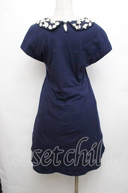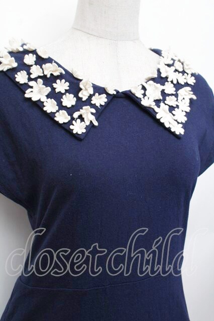 an another angelus / 花モチーフ襟ワンピース F ネイビー S-26-01-29-024-CA-OP-TE-ZS