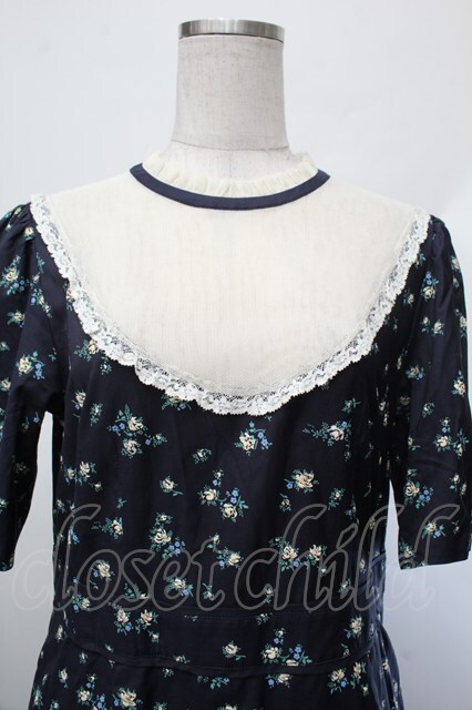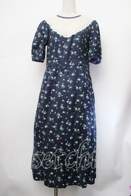 Jane Marple Dans Le Salon / ローズワンピース 紺 S-26-01-29-051-JM-OP-AS-ZS