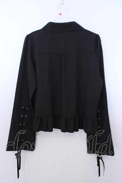 axes femme POETIQUE / レースアップデザインブラウス M クロ O-26-01-29-1022-AX-BL-OW-OS