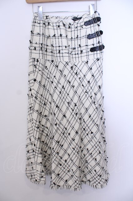 INGEBORG / ベルテッドツイードロングスカート S オフシロ×クロ O-26-01-29-1063-LO-SK-IG-OS