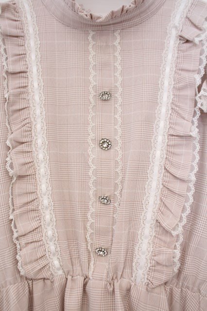 Honey Cinnamon / 肩フリルチェックワンピース ピンク O-26-01-31-055-LO-OP-YM-OS