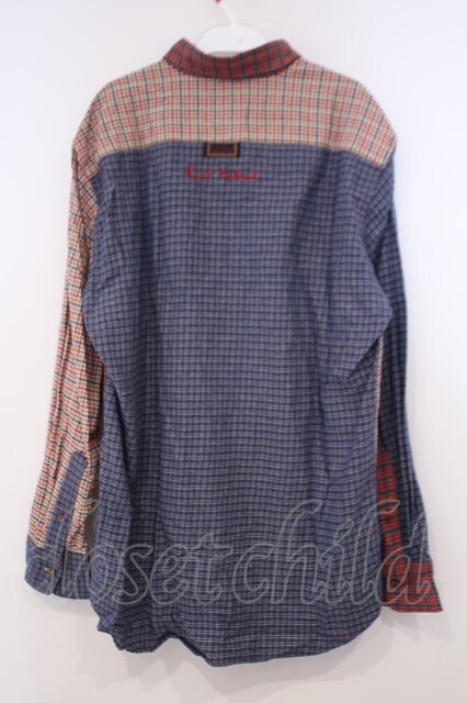 Karl Helmut / レトロミニチェックフランネルパッチワークシャツブラウス L アカ×ネイビー×ベージュ O-26-01-31-077-EL-BL-IG-OS