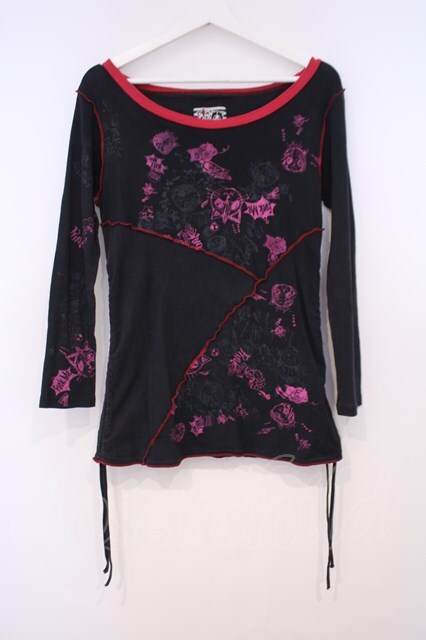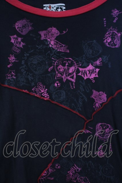 HANGRY&ANGRY / FxxK MEドロストカットソー ブラック×レッド O-26-01-31-003-HN-TO-OW-OS [2100080000073622-O-26-01-31-003-HN-TO-OW-OS]