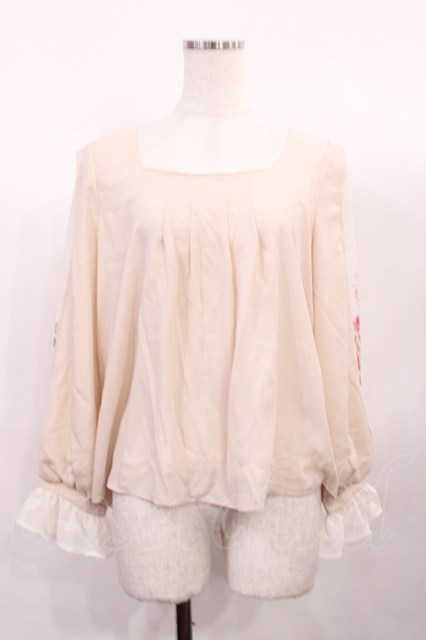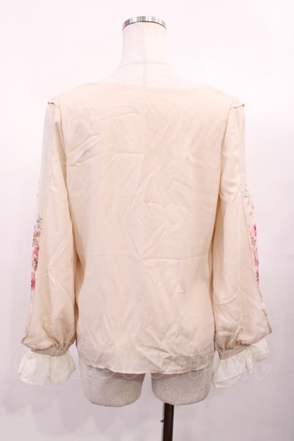 axes femme / 袖プリントブラウス M ピンク H-26-02-04-1023-AX-BL-NS-ZH