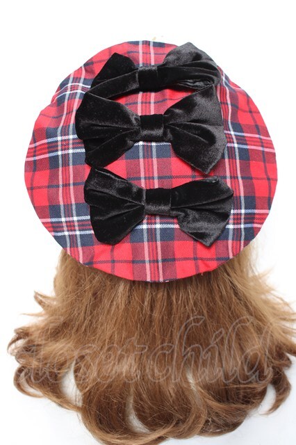 axes femme kawaii / タータンチェックベレー帽 赤 Y-26-01-31-033-AX-AC-SZ-ZY