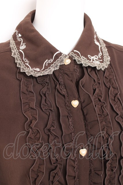 axes femme / ハートリボン刺繍ブラウス L 茶 Y-26-01-31-055-AX-BL-SZ-ZY [2100070000060219-Y-26-01-31-055-AX-BL-SZ-ZY]