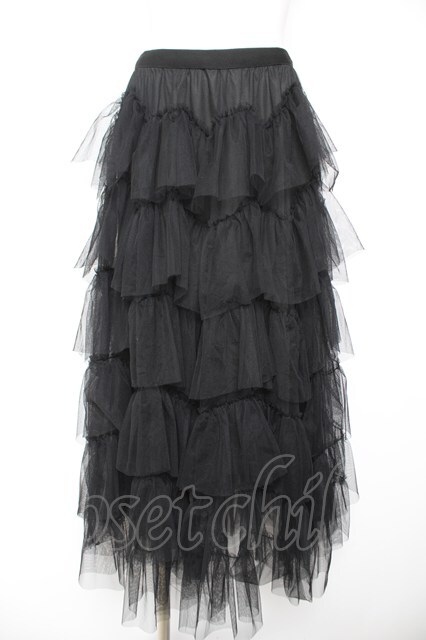 Ozz oneste / チュールウエーブフリルスカート 黒 Y-26-01-31-147-OO-SK-SZ-ZY