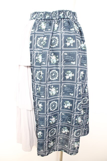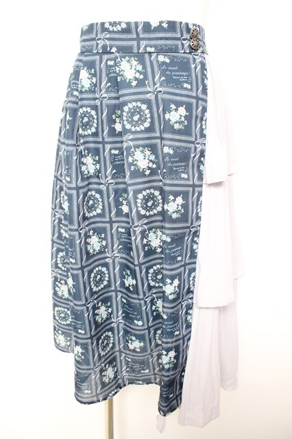 axes femme / プリーツ切り替えローズ額縁柄スカート ネイビー Y-26-01-31-161-AX-SK-SZ-ZY