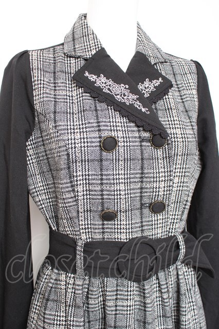 axes femme POETIQUE / 襟刺繍ドッキングワンピース M 黒 Y-26-01-31-122-AX-OP-SZ-ZY